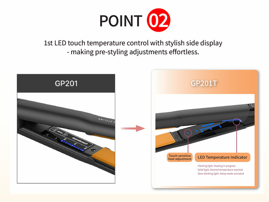 Building on the classic bestselling Glampalm GP201, the sleek GP201T Professional Styling Iron introduces 5 upgraded features, delivering a new Korean hair styling experience.