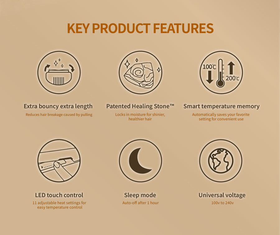 • Enhanced floating heating plate technology for effortless, long-lasting results.