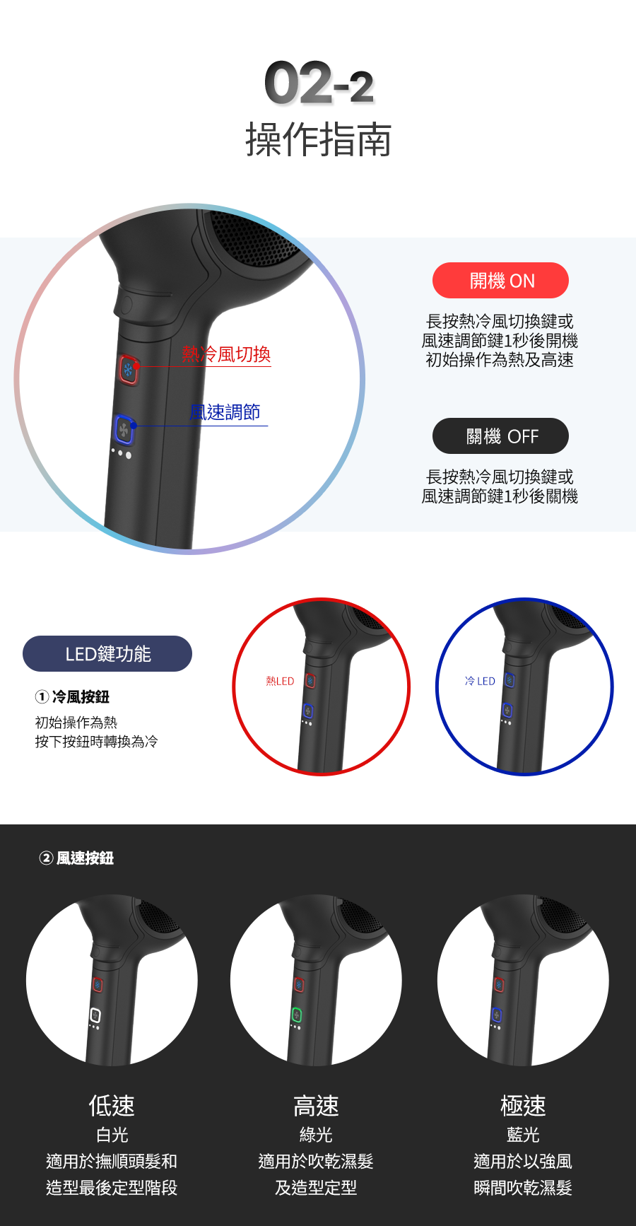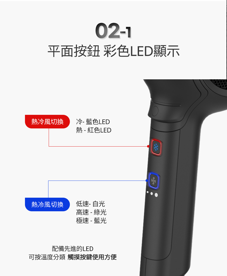 🌬 平面一鍵切換冷熱風, 3種風速段可調🔥