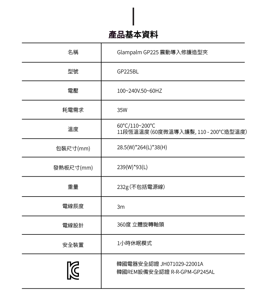 GP225設有11段可自由調節溫度,用家可根據髮質或造型所需來調節溫度。