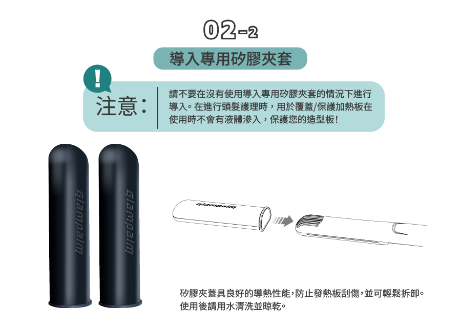 在進行微震動導入修護模式時,用於覆蓋/保護加熱板在使用時不會有液體滲入,保護您的造型板!