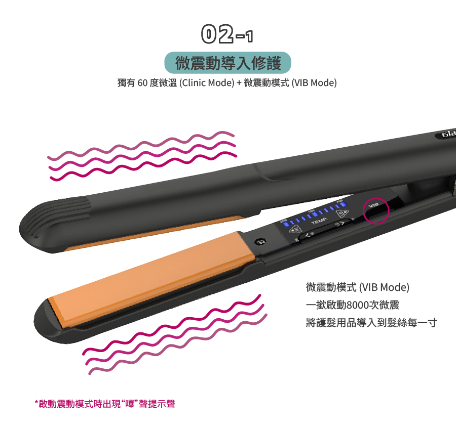 60 度微溫導入(Clinic Mode)及微震動模式(VIB Mode)