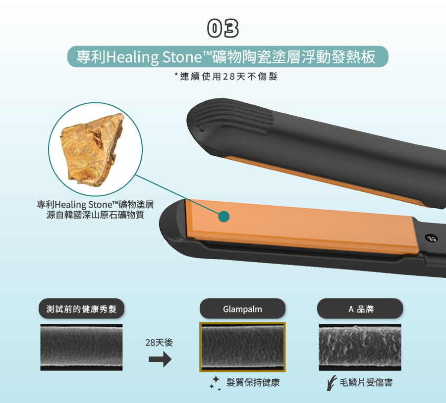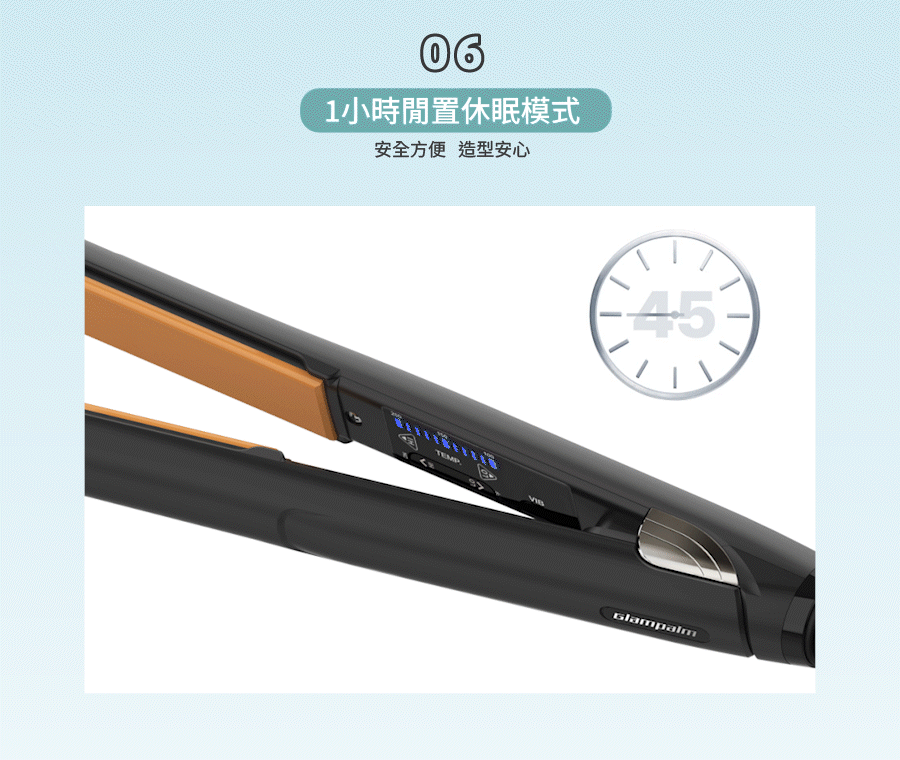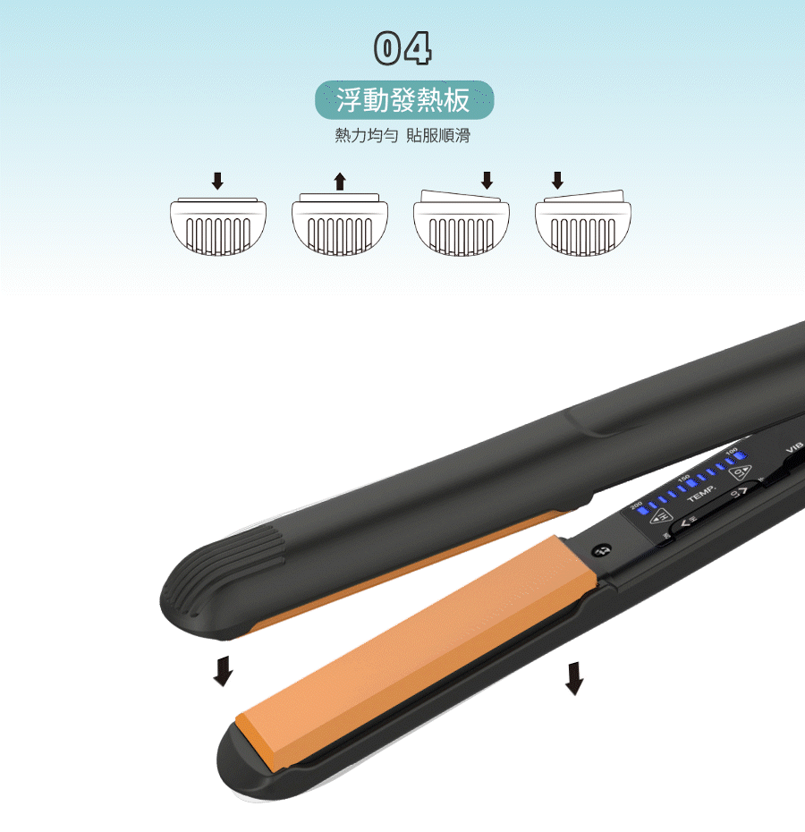 造型夾上的「智能溫度感測器」能實時感測到髮絲溫度,做到11段溫度範圍均能段段智能恆溫,讓發熱板整段過程保持所選溫度,髮尾也能充分受熱,不會出現尾段跌WATT的情況。